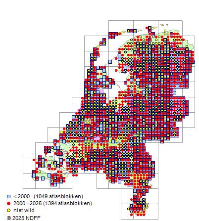Bron: FLORON - Gemodelleerd op basis van waarnemingen uit de NDFF voor de periode 2000-2021.