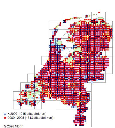 CC BY-NC-SA 3.0 NLVerspreidingNederlandVrij algemeen. Het meest in het rivierengebied en in stedelijke gebieden. Ingeburgerd tussen 1900 en 1924.