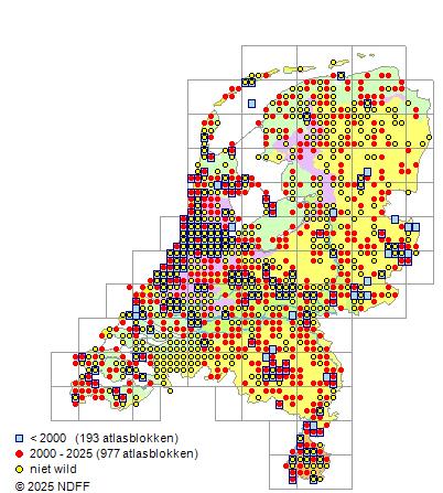 Bron: FLORON - Gemodelleerd op basis van waarnemingen uit de NDFF voor de periode 2000-2021.