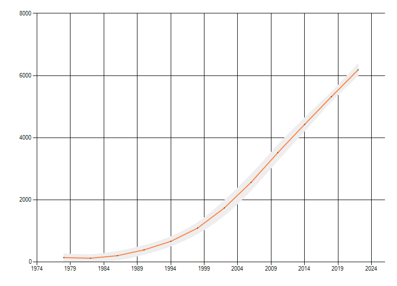 Gemiddelde trend van het aantal kilometerhokken waarin de soort voorkomt, weergegeven als indexcijfer (1975-1978 = 100). De trend is gecorrigeerd voor waarnemersinspanning en geeft de relatieve verandering in het aantal bezette kilometerhokken weer. Voor de berekening worden de data per periode van vier jaar samengenomen. In de grafiek correspondeert ieder punt met het laatste jaar van zo'n periode.
