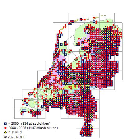 Bron: FLORON - Gemodelleerd op basis van waarnemingen uit de NDFF voor de periode 2000-2021.