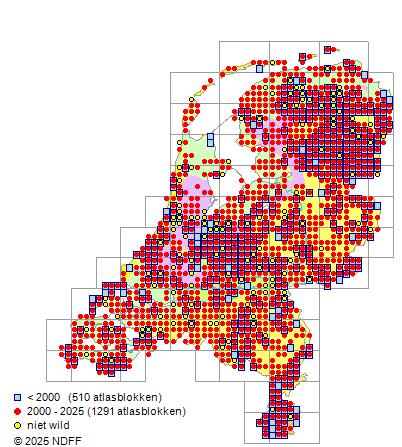 Bron: FLORON - Gemodelleerd op basis van waarnemingen uit de NDFF voor de periode 2000-2021.