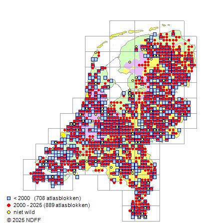 Bron: FLORON - Gemodelleerd op basis van waarnemingen uit de NDFF voor de periode 2000-2021.