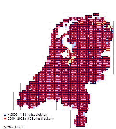 Bron: FLORON - Gemodelleerd op basis van waarnemingen uit de NDFF voor de periode 2000-2021.