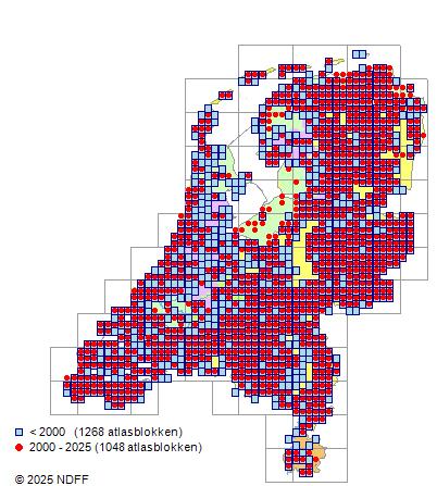Bron: FLORON - Gemodelleerd op basis van waarnemingen uit de NDFF voor de periode 2000-2021.