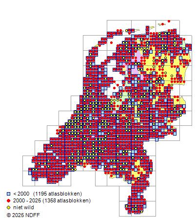 Bron: FLORON - Gemodelleerd op basis van waarnemingen uit de NDFF voor de periode 2000-2021.