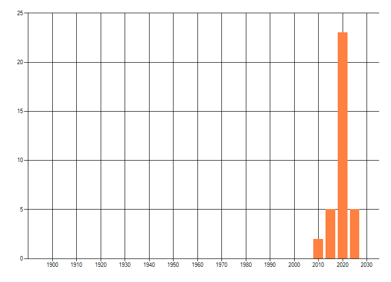 Het aantal atlasblokken (5x5 km) waarin de soort is gemeld binnen een periode van vijf jaar (vanaf 1980) of twintig jaar. Niet gecorrigeerd voor waarnemersinspanning en het aantal doorgegeven waarnemingen kan sterk variëren per periode, dus een trend in verspreiding kan hier niet direct uit worden afgelezen. Het opgegeven jaartal is het eerste jaar van de periode. Bron: gevalideerde waarnemingen uit de NDFF.
