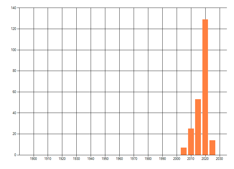 Het aantal atlasblokken (5x5 km) waarin de soort is gemeld binnen een periode van vijf jaar (vanaf 1980) of twintig jaar. Niet gecorrigeerd voor waarnemersinspanning en het aantal doorgegeven waarnemingen kan sterk variëren per periode, dus een trend in verspreiding kan hier niet direct uit worden afgelezen. Het opgegeven jaartal is het eerste jaar van de periode. Bron: gevalideerde waarnemingen uit de NDFF.