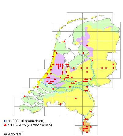 ). Slechts twee meldingen uit Nieuwersluis (1969) en Rhijnauwen (1961). Mogelijk over het hoofd gezien, want elders (Verenigd Koninkrijk, Oostenrijk) algemeen.