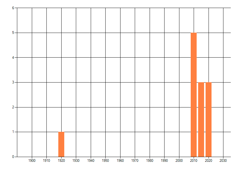 Het aantal atlasblokken (5x5 km) waarin de soort is gemeld binnen een periode van vijf jaar (vanaf 1980) of twintig jaar. Niet gecorrigeerd voor waarnemersinspanning en het aantal doorgegeven waarnemingen kan sterk variëren per periode, dus een trend in verspreiding kan hier niet direct uit worden afgelezen. Het opgegeven jaartal is het eerste jaar van de periode. Bron: gevalideerde waarnemingen uit de NDFF.