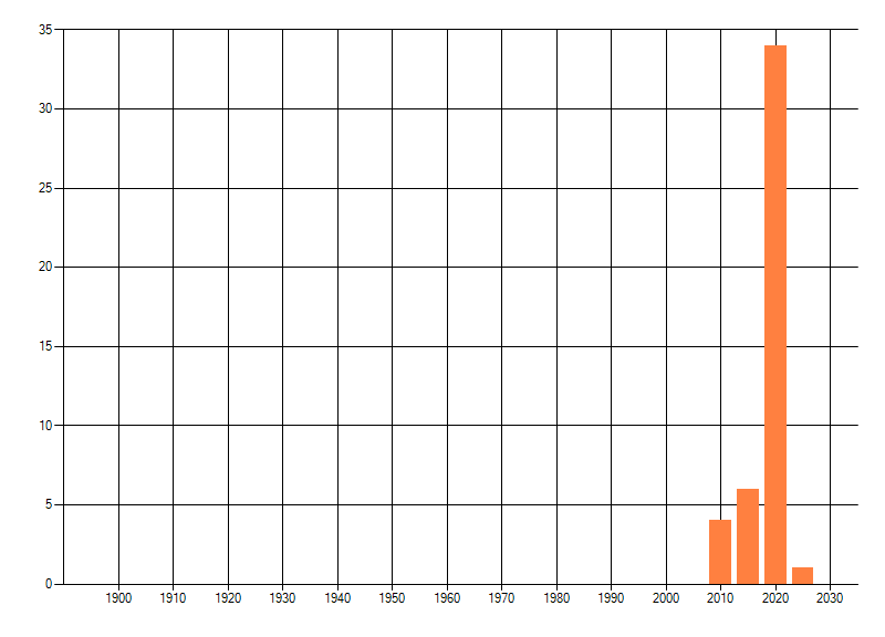 Het aantal atlasblokken (5x5 km) waarin de soort is gemeld binnen een periode van vijf jaar (vanaf 1980) of twintig jaar. Niet gecorrigeerd voor waarnemersinspanning en het aantal doorgegeven waarnemingen kan sterk variëren per periode, dus een trend in verspreiding kan hier niet direct uit worden afgelezen. Het opgegeven jaartal is het eerste jaar van de periode. Bron: gevalideerde waarnemingen uit de NDFF.