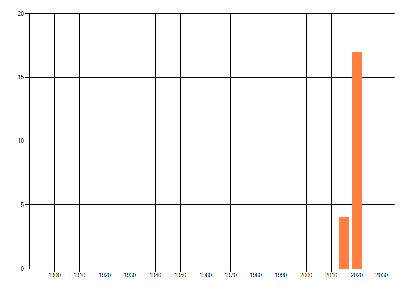Het aantal atlasblokken (5x5 km) waarin de soort is gemeld binnen een periode van vijf jaar (vanaf 1980) of twintig jaar. Niet gecorrigeerd voor waarnemersinspanning en het aantal doorgegeven waarnemingen kan sterk variëren per periode, dus een trend in verspreiding kan hier niet direct uit worden afgelezen. Het opgegeven jaartal is het eerste jaar van de periode. Bron: gevalideerde waarnemingen uit de NDFF.