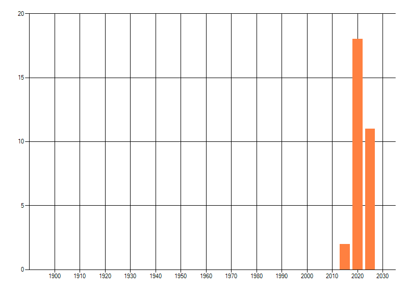 Het aantal atlasblokken (5x5 km) waarin de soort is gemeld binnen een periode van vijf jaar (vanaf 1980) of twintig jaar. Niet gecorrigeerd voor waarnemersinspanning en het aantal doorgegeven waarnemingen kan sterk variëren per periode, dus een trend in verspreiding kan hier niet direct uit worden afgelezen. Het opgegeven jaartal is het eerste jaar van de periode. Bron: gevalideerde waarnemingen uit de NDFF.