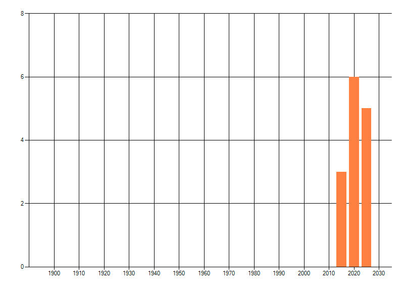 Het aantal atlasblokken (5x5 km) waarin de soort is gemeld binnen een periode van vijf jaar (vanaf 1980) of twintig jaar. Niet gecorrigeerd voor waarnemersinspanning en het aantal doorgegeven waarnemingen kan sterk variëren per periode, dus een trend in verspreiding kan hier niet direct uit worden afgelezen. Het opgegeven jaartal is het eerste jaar van de periode. Bron: gevalideerde waarnemingen uit de NDFF.