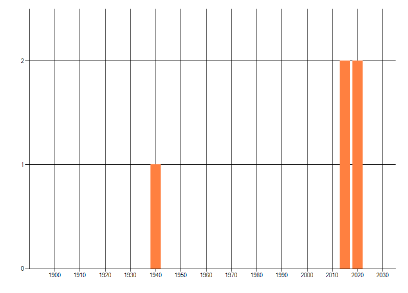 Het aantal atlasblokken (5x5 km) waarin de soort is gemeld binnen een periode van vijf jaar (vanaf 1980) of twintig jaar. Niet gecorrigeerd voor waarnemersinspanning en het aantal doorgegeven waarnemingen kan sterk variëren per periode, dus een trend in verspreiding kan hier niet direct uit worden afgelezen. Het opgegeven jaartal is het eerste jaar van de periode. Bron: gevalideerde waarnemingen uit de NDFF.