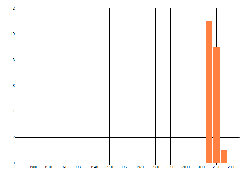 Het aantal atlasblokken (5x5 km) waarin de soort is gemeld binnen een periode van vijf jaar (vanaf 1980) of twintig jaar. Niet gecorrigeerd voor waarnemersinspanning en het aantal doorgegeven waarnemingen kan sterk variëren per periode, dus een trend in verspreiding kan hier niet direct uit worden afgelezen. Het opgegeven jaartal is het eerste jaar van de periode. Bron: gevalideerde waarnemingen uit de NDFF.