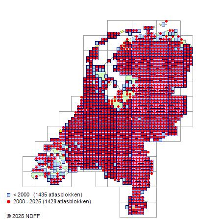 Bron: FLORON - Gemodelleerd op basis van waarnemingen uit de NDFF voor de periode 2000-2021.