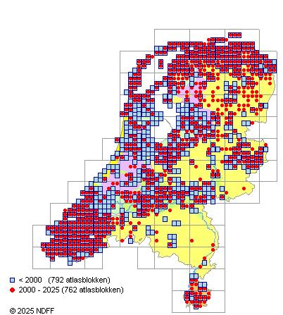 Bron: FLORON - Gemodelleerd op basis van waarnemingen uit de NDFF voor de periode 2000-2021.