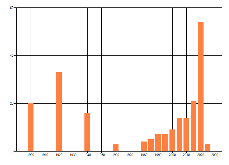 dus een trend in verspreiding kan hier niet direct uit worden afgelezen. Het opgegeven jaartal is het eerste jaar van de