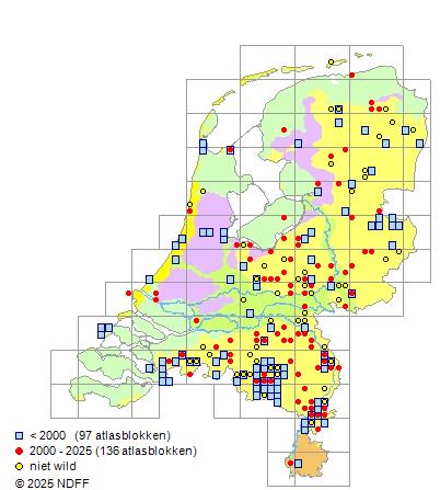 Bron: FLORON - Gemodelleerd op basis van waarnemingen uit de NDFF voor de periode 2000-2021.