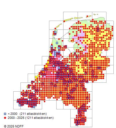 Bron: FLORON - Gemodelleerd op basis van waarnemingen uit de NDFF voor de periode 2000-2021.