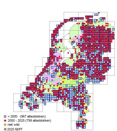 Bron: FLORON - Gemodelleerd op basis van waarnemingen uit de NDFF voor de periode 2000-2021.
