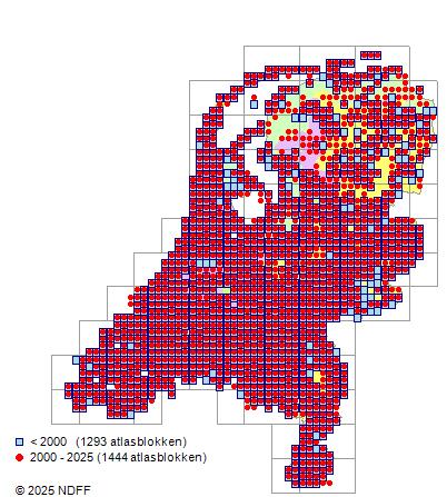 Bron: FLORON - Gemodelleerd op basis van waarnemingen uit de NDFF voor de periode 2000-2021.