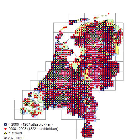 Bron: FLORON - Gemodelleerd op basis van waarnemingen uit de NDFF voor de periode 2000-2021.