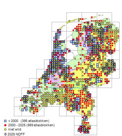 Bron: FLORON - Gemodelleerd op basis van waarnemingen uit de NDFF voor de periode 2000-2021.