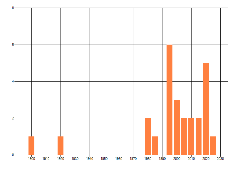 dus een trend in verspreiding kan hier niet direct uit worden afgelezen. Het opgegeven jaartal is het eerste jaar van de