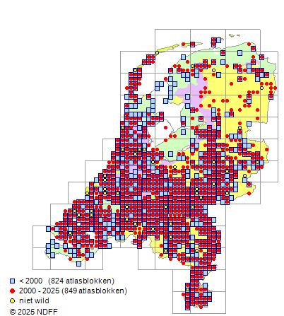 Bron: FLORON - Gemodelleerd op basis van waarnemingen uit de NDFF voor de periode 2000-2021.