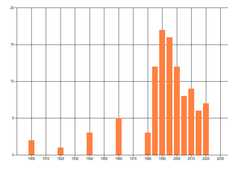 dus een trend in verspreiding kan hier niet direct uit worden afgelezen. Het opgegeven jaartal is het eerste jaar van de