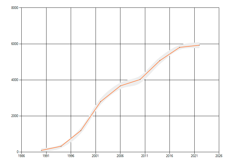 In de grafiek correspondeert ieder punt met het laatste jaar van zo'n periode.