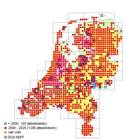 Bron: FLORON - Gemodelleerd op basis van waarnemingen uit de NDFF voor de periode 2000-2021.