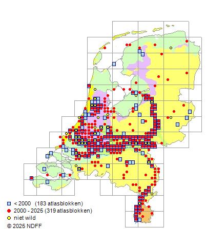 Bron: FLORON - Gemodelleerd op basis van waarnemingen uit de NDFF voor de periode 2000-2021.