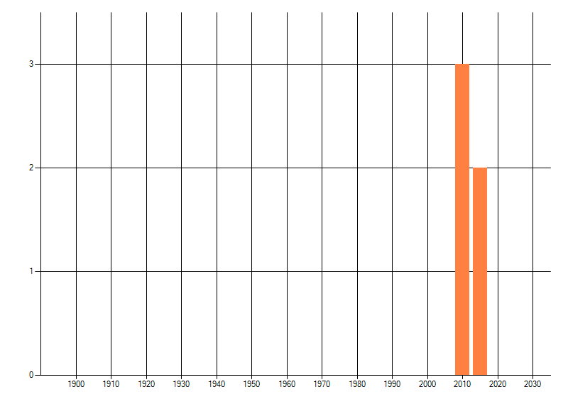 Het aantal atlasblokken (5x5 km) waarin de soort is gemeld binnen een periode van vijf jaar (vanaf 1980) of twintig jaar. Niet gecorrigeerd voor waarnemersinspanning en het aantal doorgegeven waarnemingen kan sterk variëren per periode, dus een trend in verspreiding kan hier niet direct uit worden afgelezen. Het opgegeven jaartal is het eerste jaar van de periode. Bron: gevalideerde waarnemingen uit de NDFF.