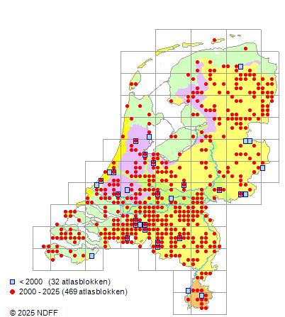 De trend is gecorrigeerd voor waarnemersinspanning en geeft de relatieve verandering in het aantal bezette kilometerhokken weer.