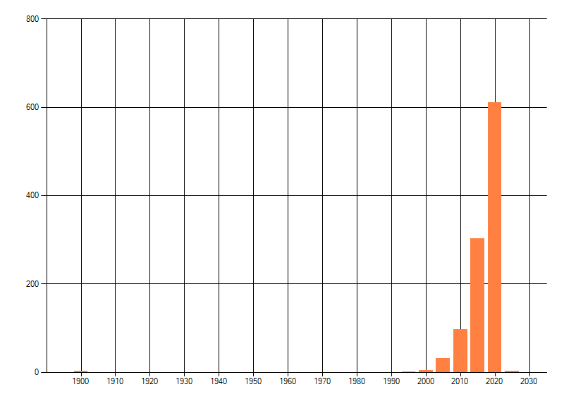 Het aantal atlasblokken (5x5 km) waarin de soort is gemeld binnen een periode van vijf jaar (vanaf 1980) of twintig jaar. Niet gecorrigeerd voor waarnemersinspanning en het aantal doorgegeven waarnemingen kan sterk variëren per periode, dus een trend in verspreiding kan hier niet direct uit worden afgelezen. Het opgegeven jaartal is het eerste jaar van de periode. Bron: gevalideerde waarnemingen uit de NDFF.