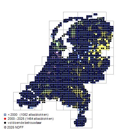 Het voor waarnemingsinspanning gecorrigeerde, of door een expert geschatte aantal atlasblokken (5x5 km)