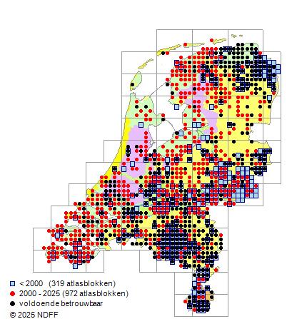 Het voor waarnemingsinspanning gecorrigeerde, of door een expert geschatte aantal atlasblokken (5x5 km)