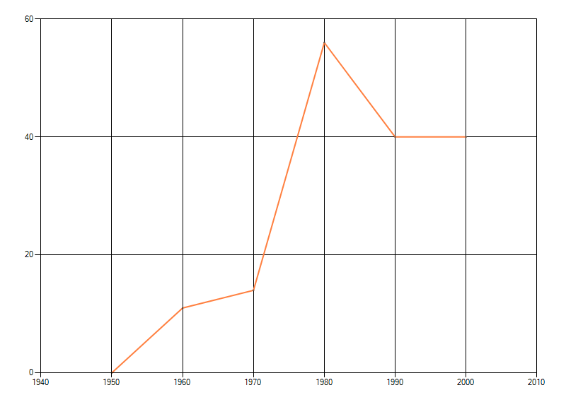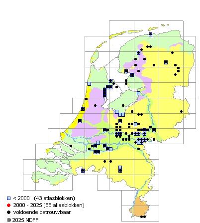 Het voor waarnemingsinspanning gecorrigeerde, of door een expert geschatte aantal atlasblokken (5x5 km) waarin de soort voorkomt per periode van tien jaar. Soms fluctueert het aantal sterk. Hoe vloeiender de lijn, des te betrouwbaarder de grafiek. Bron: Rode Lijst Mossen 2010. © BLWG 2011