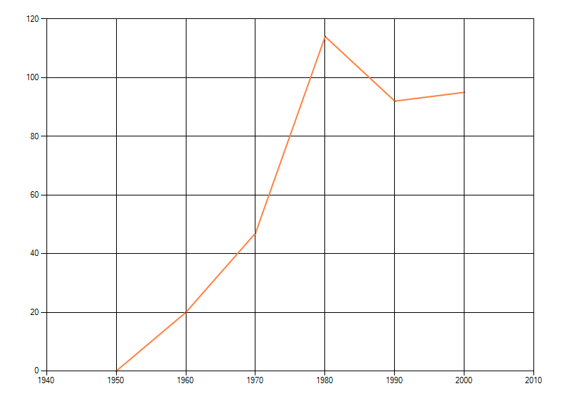 Het voor waarnemingsinspanning gecorrigeerde, of door een expert geschatte aantal atlasblokken (5x5 km) waarin de soort voorkomt per periode van tien jaar. Soms fluctueert het aantal sterk. Hoe vloeiender de lijn, des te betrouwbaarder de grafiek. Bron: Rode Lijst Mossen 2010. © BLWG 2011