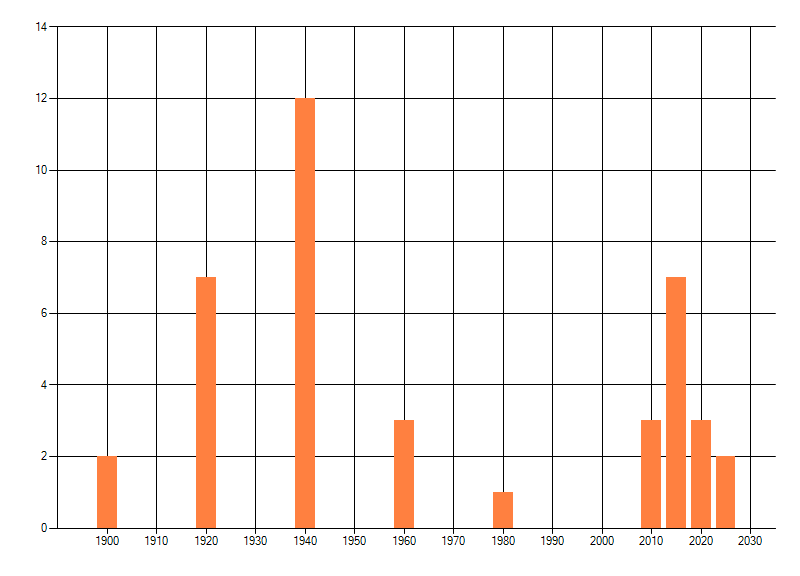 Het aantal atlasblokken (5x5 km) waarin de soort is gemeld binnen een periode van vijf jaar (vanaf 1980) of twintig jaar. Niet gecorrigeerd voor waarnemersinspanning en het aantal doorgegeven waarnemingen kan sterk variëren per periode, dus een trend in verspreiding kan hier niet direct uit worden afgelezen. Het opgegeven jaartal is het eerste jaar van de periode. Bron: gevalideerde waarnemingen uit de NDFF.