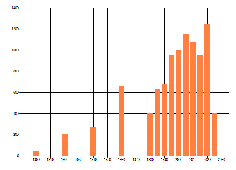 Het aantal atlasblokken (5x5 km) waarin de soort is gemeld binnen een periode van vijf jaar (vanaf 1980) of twintig jaar. Niet gecorrigeerd voor waarnemersinspanning en het aantal doorgegeven waarnemingen kan sterk variƫren per periode, dus een trend in verspreiding kan hier niet direct uit worden afgelezen. Het opgegeven jaartal is het eerste jaar van de periode. Bron: gevalideerde waarnemingen uit de NDFF.