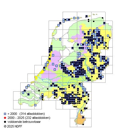 Het voor waarnemingsinspanning gecorrigeerde, of door een expert geschatte aantal atlasblokken (5x5 km)