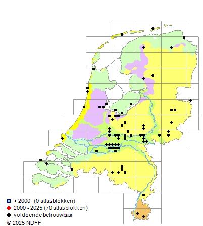 Het opgegeven jaartal is het eerste jaar van de periode. Bron: gevalideerde waarnemingen uit de NDFF.