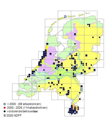 Het voor waarnemingsinspanning gecorrigeerde, of door een expert geschatte aantal atlasblokken (5x5 km)