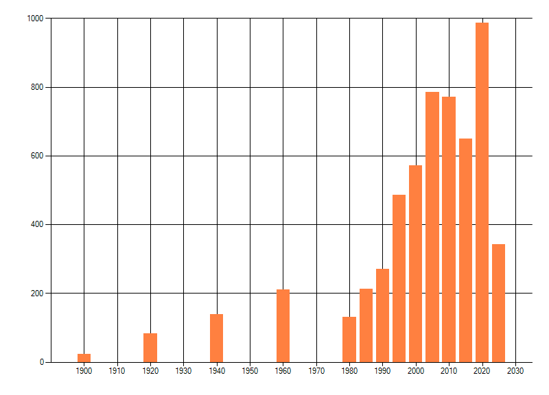 Het aantal atlasblokken (5x5 km) waarin de soort is gemeld binnen een periode van vijf jaar (vanaf 1980) of twintig jaar. Niet gecorrigeerd voor waarnemersinspanning en het aantal doorgegeven waarnemingen kan sterk variƫren per periode, dus een trend in verspreiding kan hier niet direct uit worden afgelezen. Het opgegeven jaartal is het eerste jaar van de periode. Bron: gevalideerde waarnemingen uit de NDFF.