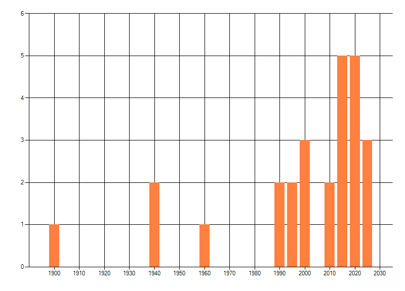 Het aantal atlasblokken (5x5 km) waarin de soort is gemeld binnen een periode van vijf jaar (vanaf 1980) of twintig jaar. Niet gecorrigeerd voor waarnemersinspanning en het aantal doorgegeven waarnemingen kan sterk variëren per periode, dus een trend in verspreiding kan hier niet direct uit worden afgelezen. Het opgegeven jaartal is het eerste jaar van de periode. Bron: gevalideerde waarnemingen uit de NDFF.