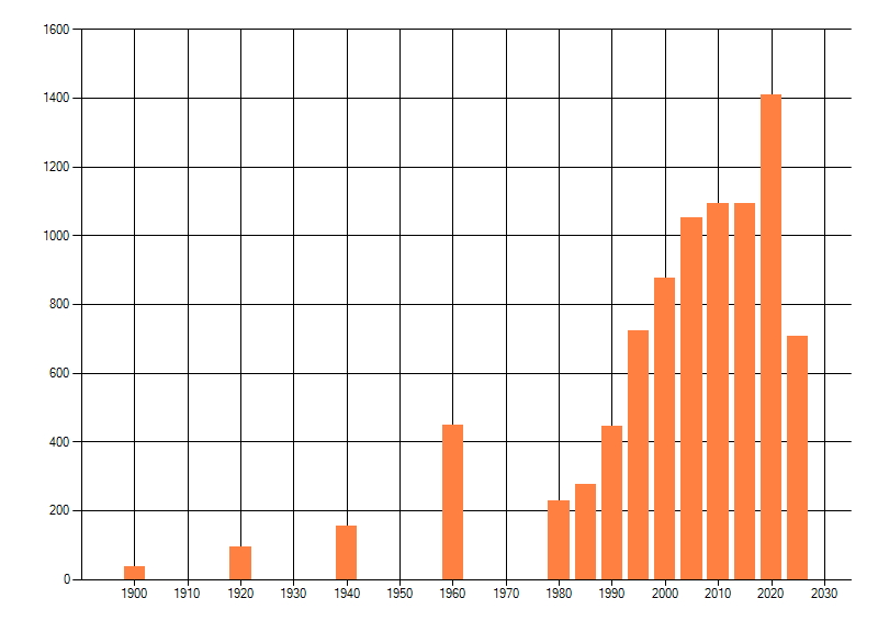 Het aantal atlasblokken (5x5 km) waarin de soort is gemeld binnen een periode van vijf jaar (vanaf 1980) of twintig jaar. Niet gecorrigeerd voor waarnemersinspanning en het aantal doorgegeven waarnemingen kan sterk variëren per periode, dus een trend in verspreiding kan hier niet direct uit worden afgelezen. Het opgegeven jaartal is het eerste jaar van de periode. Bron: gevalideerde waarnemingen uit de NDFF.